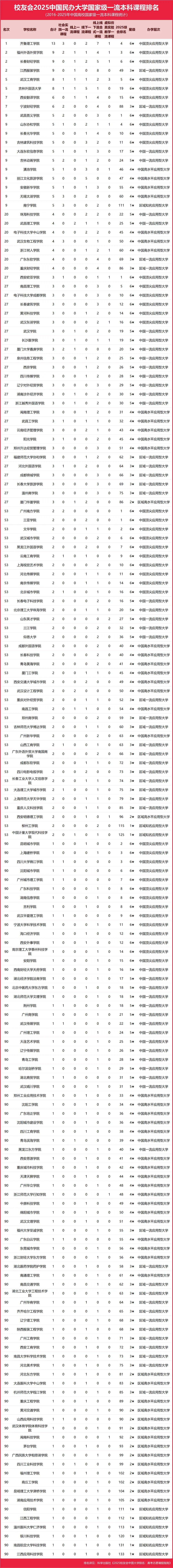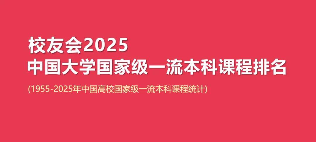 校友会中国大学排名基于“大平台、大团队、大项目、大成果、大校友”体系框架对中国大学办学质量进行系统评价,至今已有23年的历史,已成为具有广泛社会影响力、公信力、参考价值和创新力的中国大学排名领先品牌。校友会2025中国大学国家级一流本科课程排名统计对象为2016-2025年中国大学(第一建设单位)被认定的国家级一流本科课程。