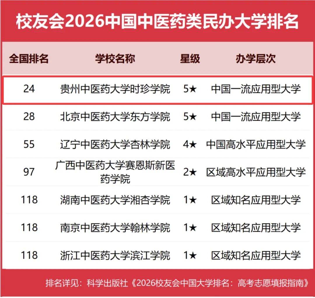 喜报 | 贵州中医药大学时珍学院荣登校友会2026排名双榜前列