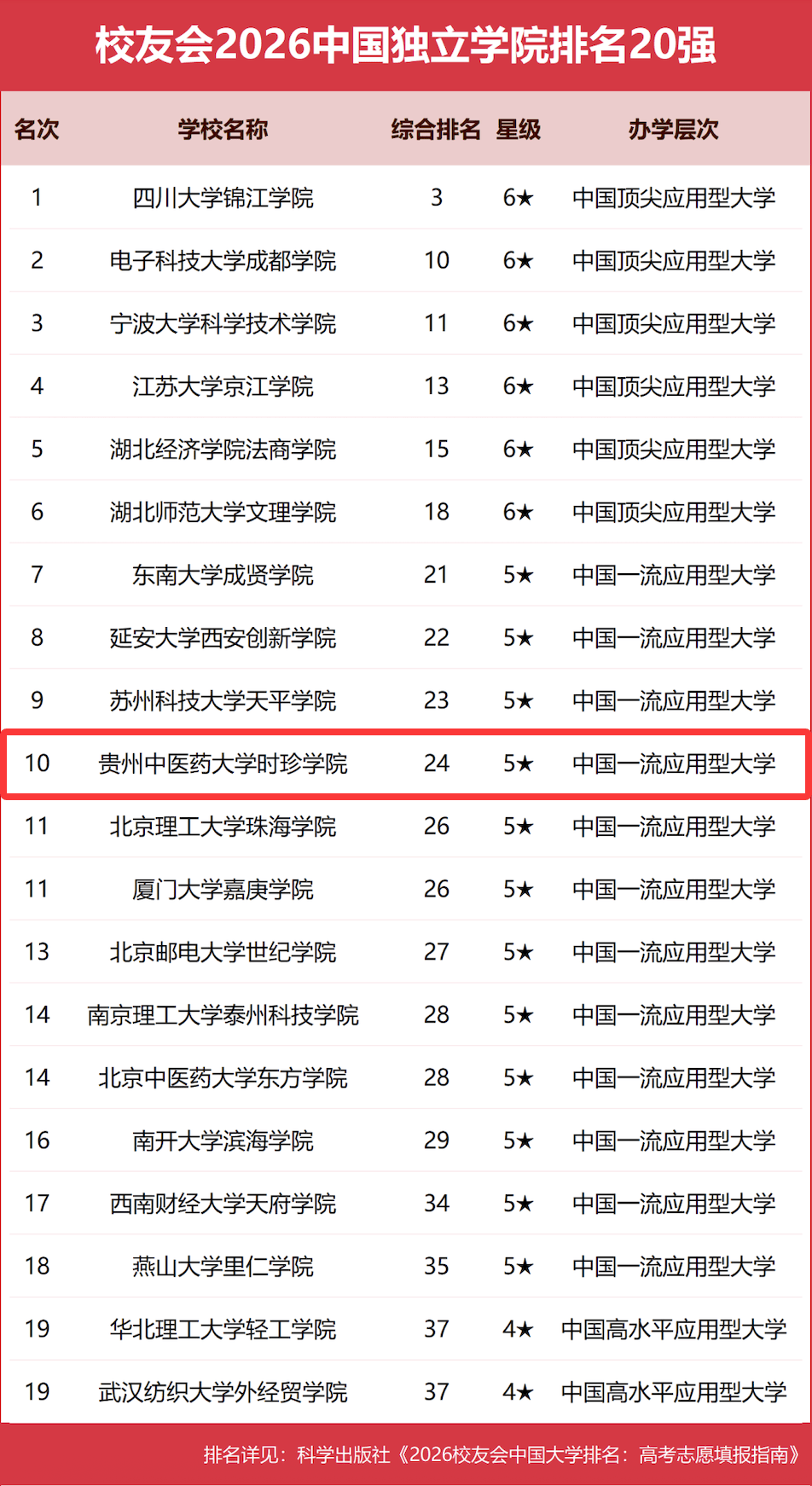 ✨ 跻身2026中国独立学院排名第10名