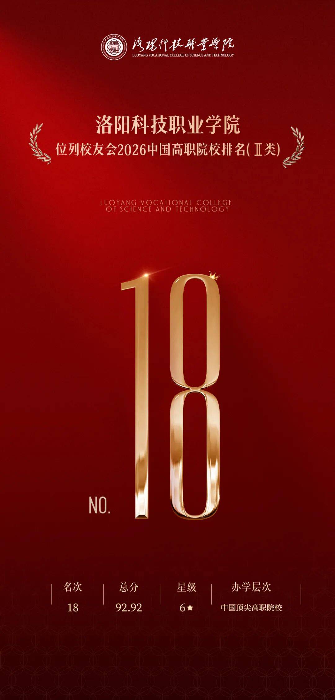 校友会2026中国高职院校(Ⅱ类)第 18 名