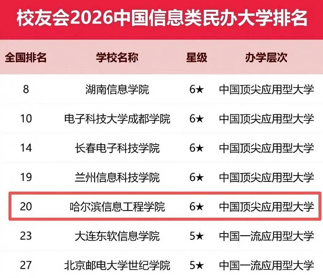校友会2026中国信息类民办大学排名,哈尔滨信息工程学院全国第5,省内第1!