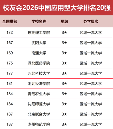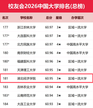 校友会2026中国大学排名第181位