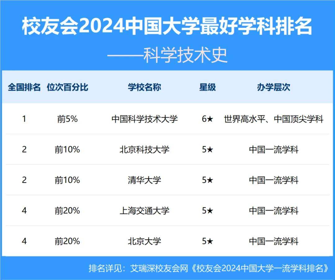 中国科学技术大学位居校友会2024中国最好学科排名(科学技术史)第一