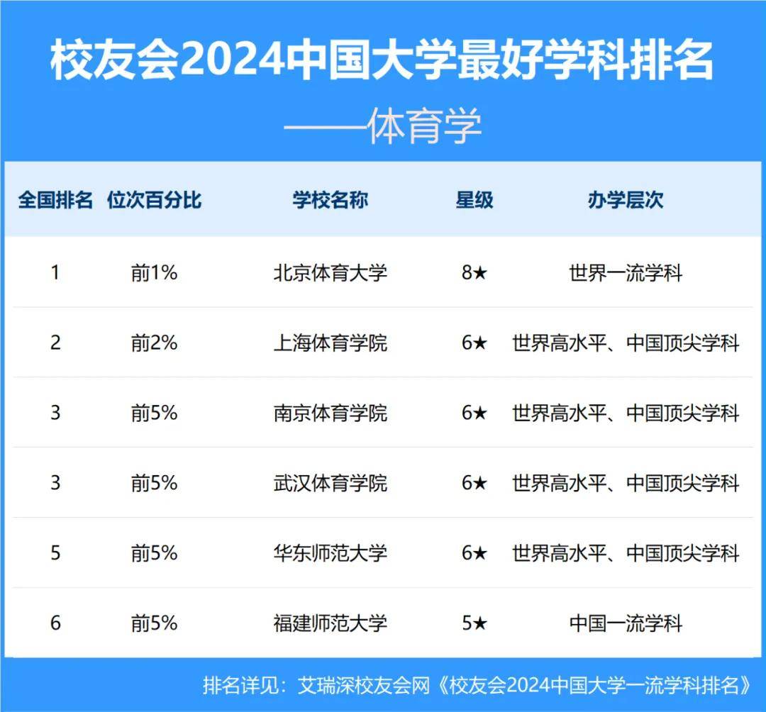 北京体育大学位居校友会2024中国最好学科排名(体育学)第一