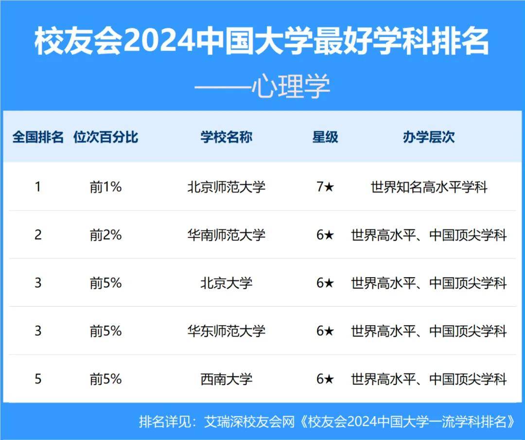 北京师范大学位居校友会2024中国最好学科排名(心理学)第一