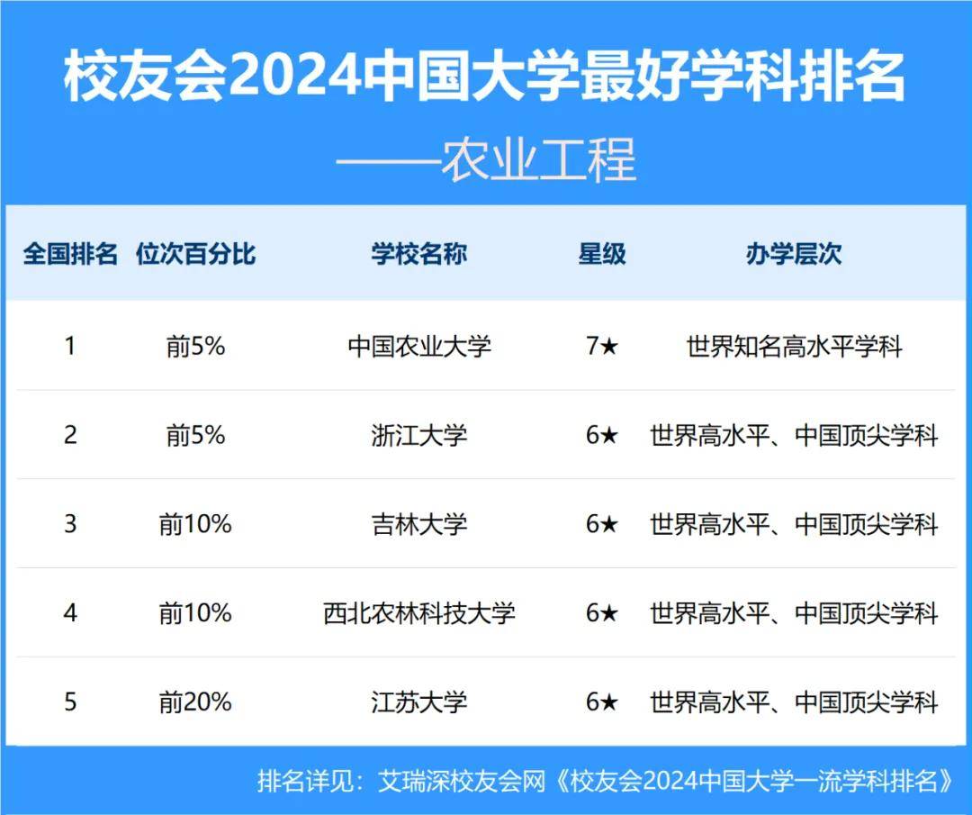 中国农业大学位居校友会2024中国最好学科排名(农业工程)第一
