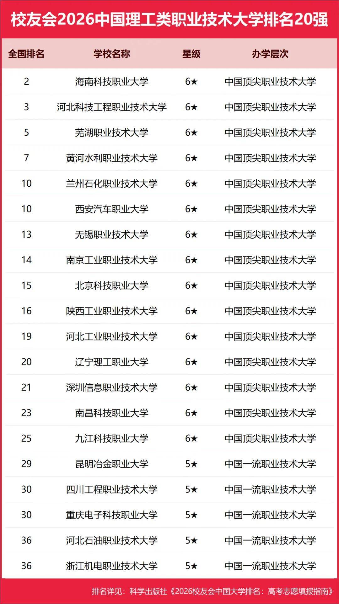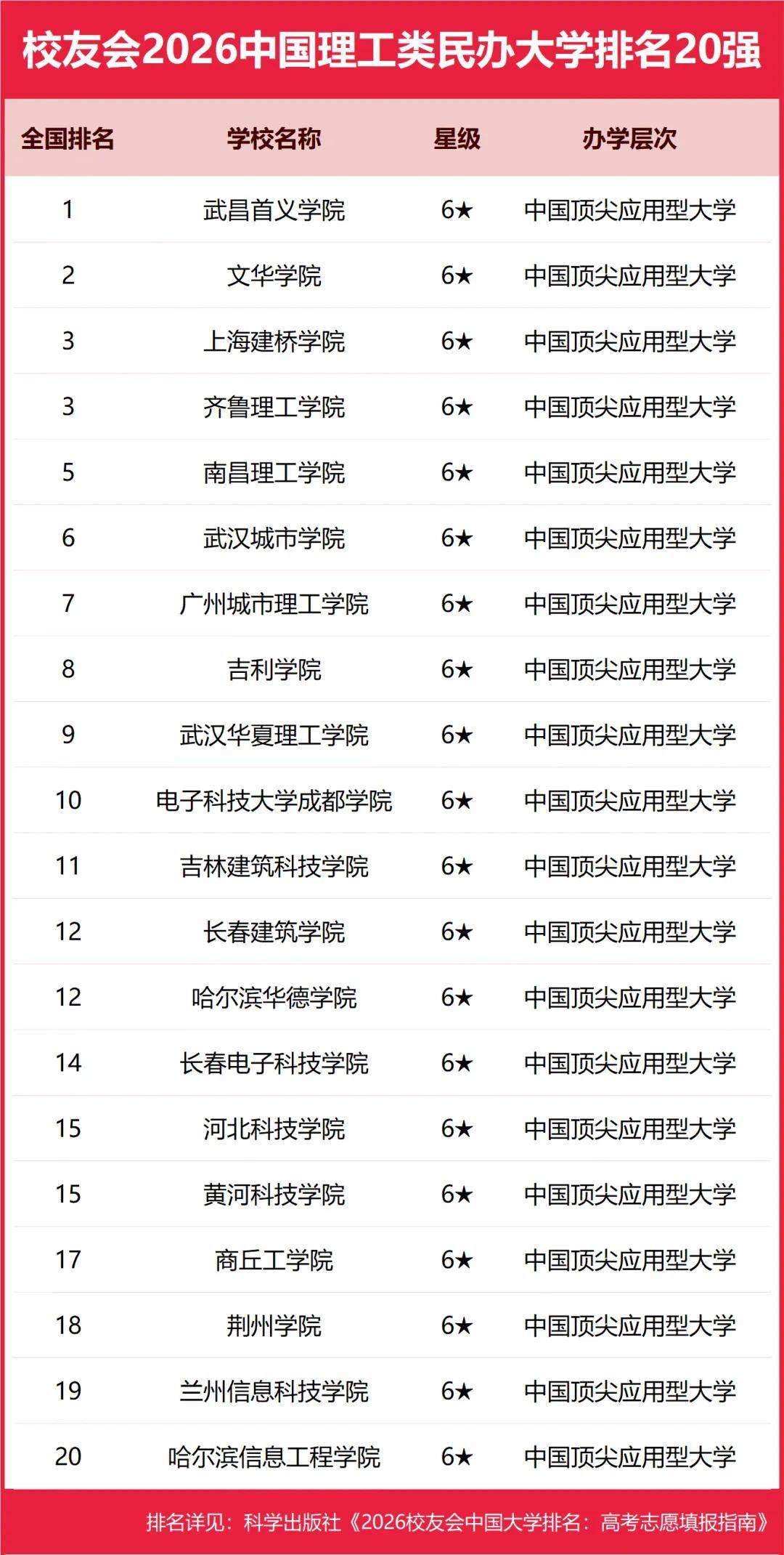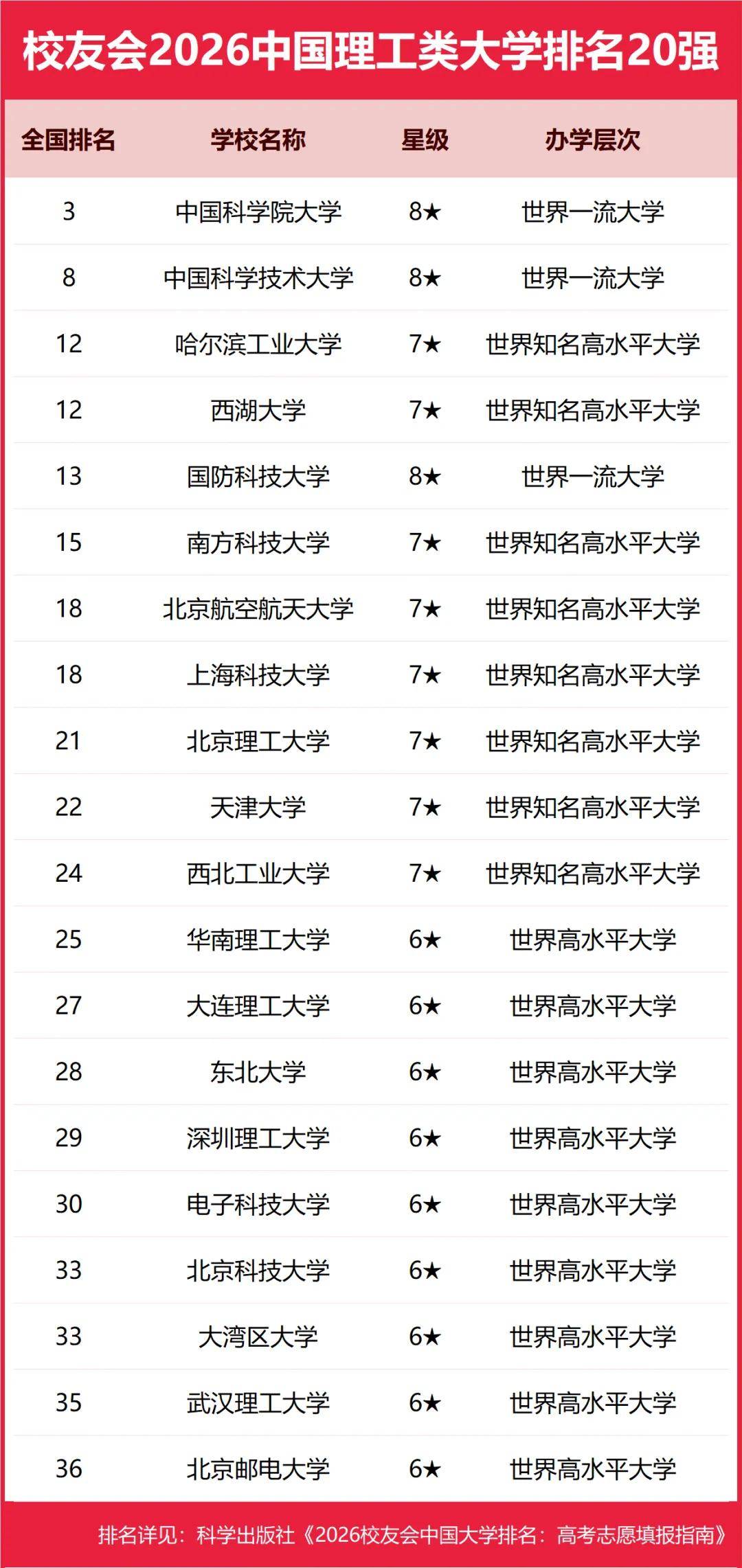 校友会2026中国理工类大学排名,中国科学院大学、武昌首义学院、海南科技职业大学、江西应用技术职业学院第一