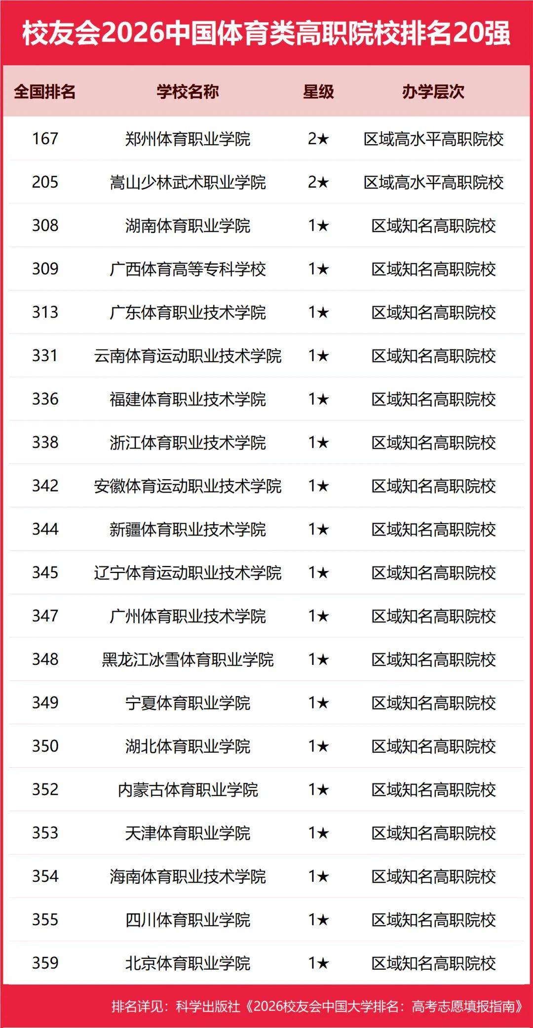 校友会2026中国体育类大学排名,北京体育大学、武汉体育学院体育科技学院、郑州体育职业学院第一