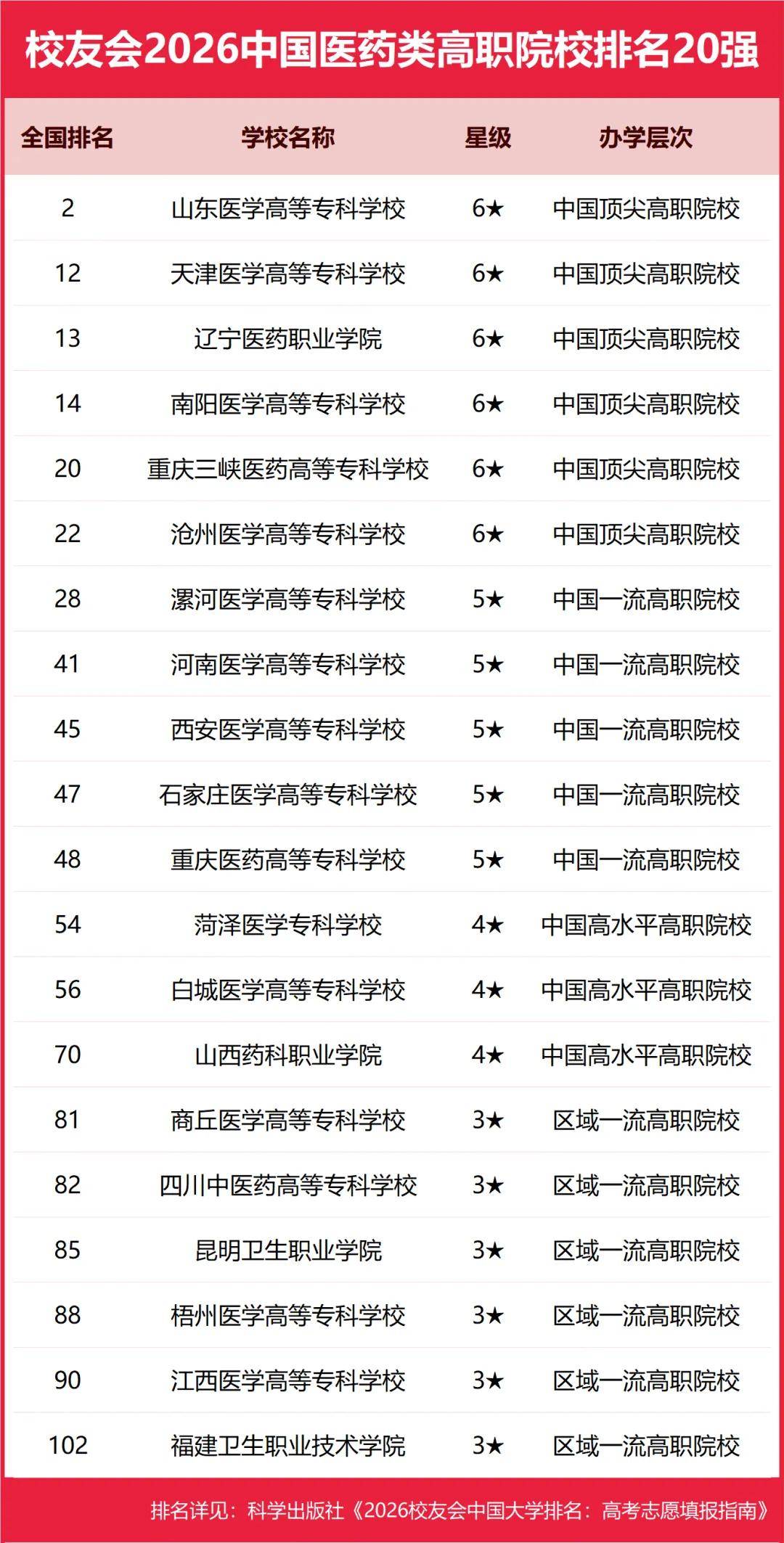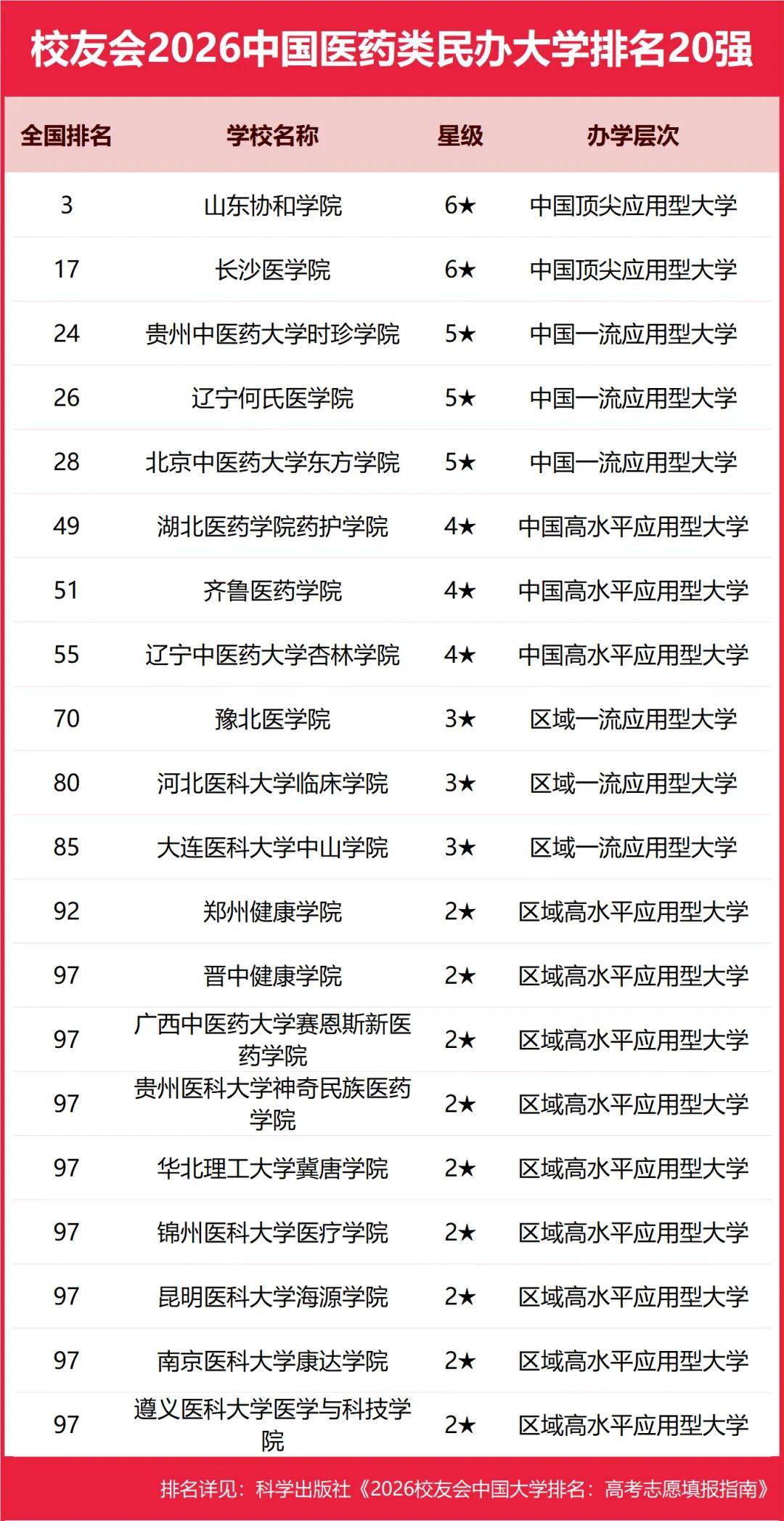 校友会2026中国医药类大学排名,北京大学医学部、山东协和学院、贵阳康养职业大学、山东医学高等专科学校第一