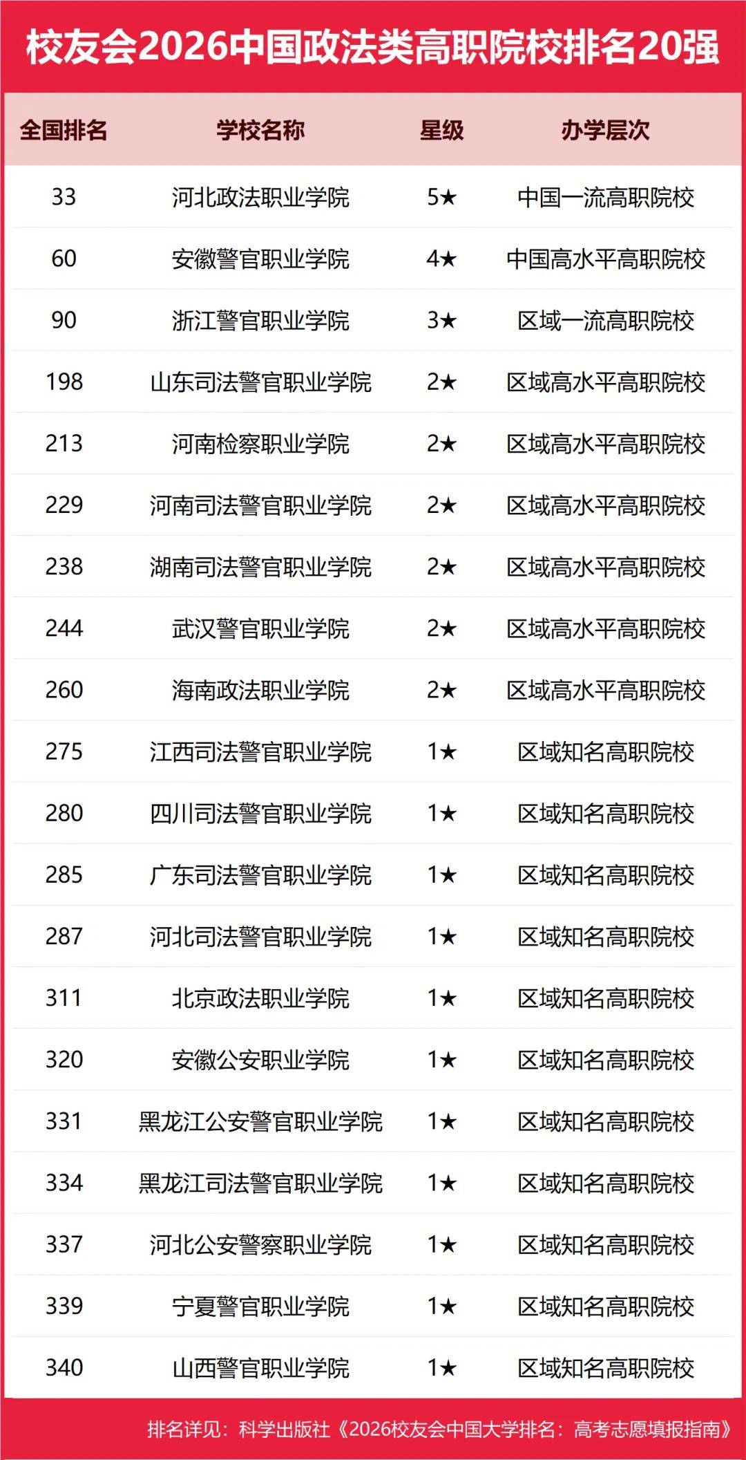 校友会2026中国政法类大学排名,中国政法大学、河北政法职业学院第一