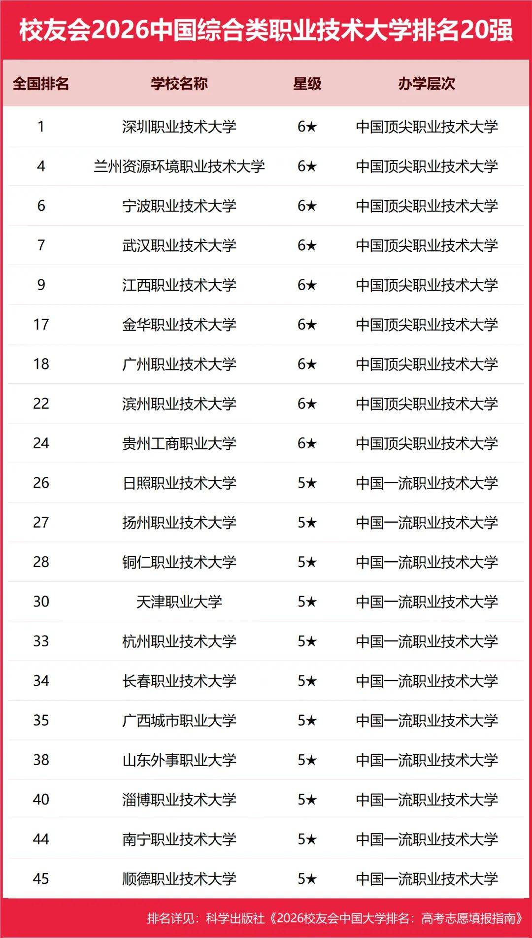 四、江西应用技术职业学院、合肥职业技术学院、浙江金融职业学院、山东医学高等专科学校、武汉外语外事职业学院等雄居2026中国各类型高职院校排名第一
