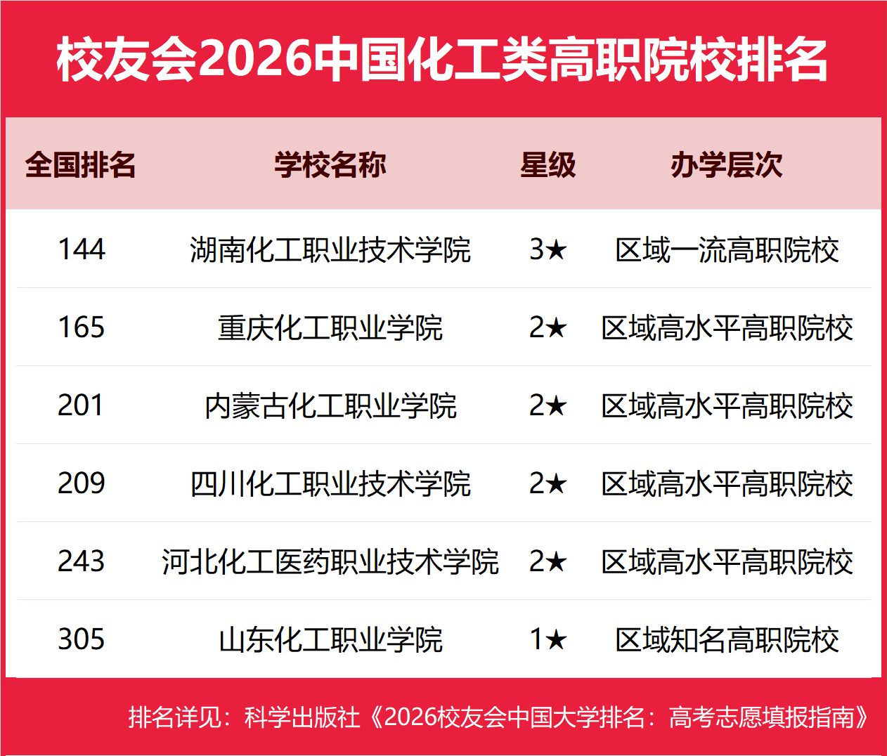 校友会2026中国化工类大学排名,华东理工大学、湖南化工职业技术学院第一